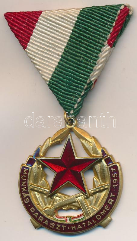 1957. "Munkás-Paraszt Hatalomért Emlékérem" aranyozott, zománcozott Br kitüntetés mellszalagon, tokban T:2 NMK 700.