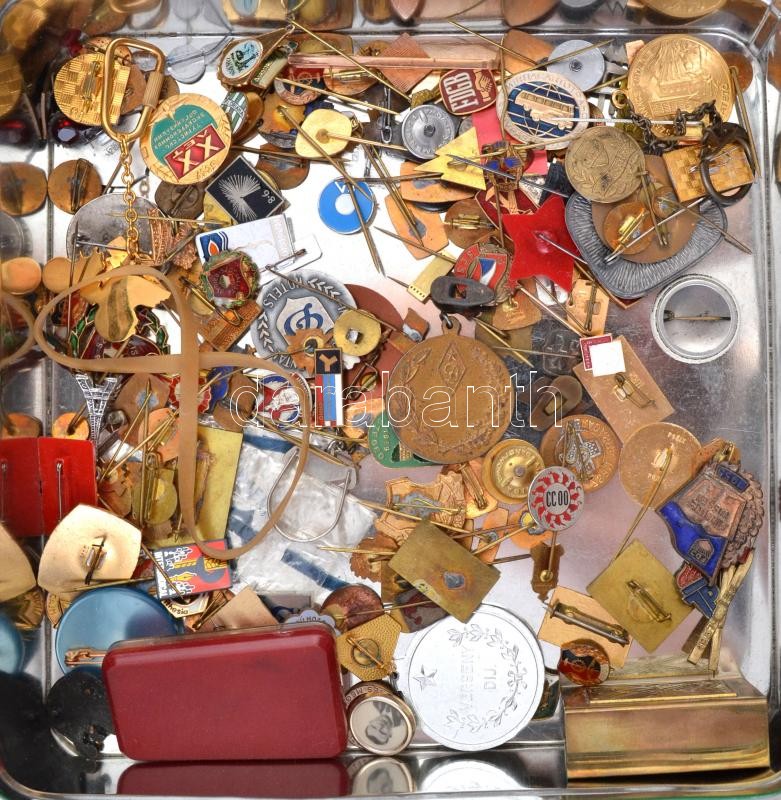 Fémdobozban több száz darab vegyes magyar és külföldi szocialista kitű...