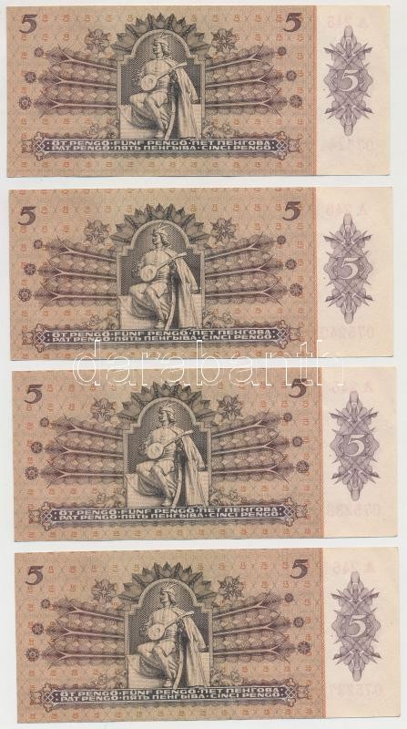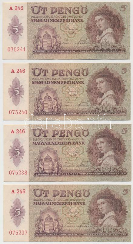 1939. 5P (4x), sorszámkövetők és egyugrású sorszámmal is T:II,II- Adam...