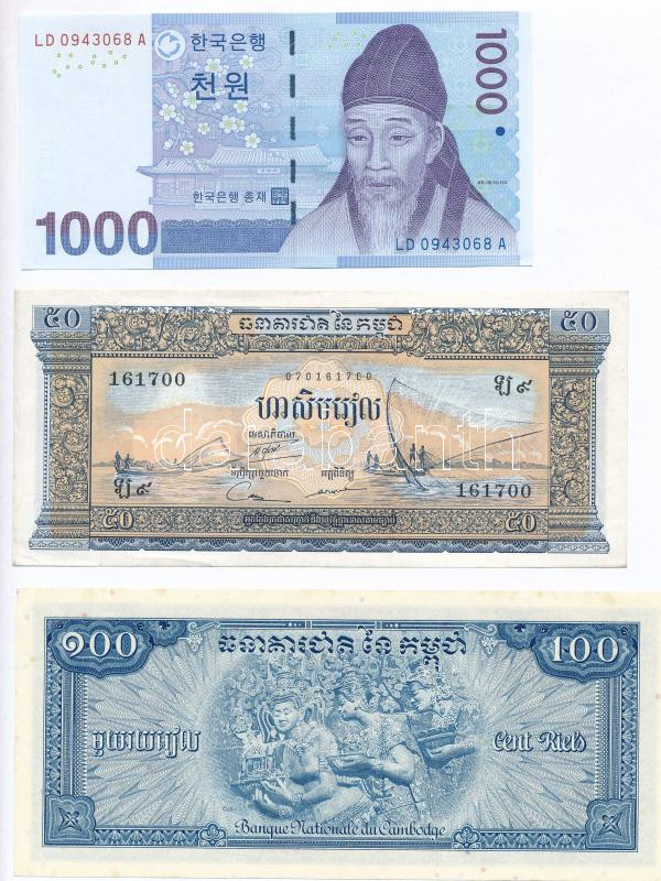 Vegyes Kambodzsa 1956-1975. 50R + 1956-1972. 100R + Dél-Korea 2007. 10...