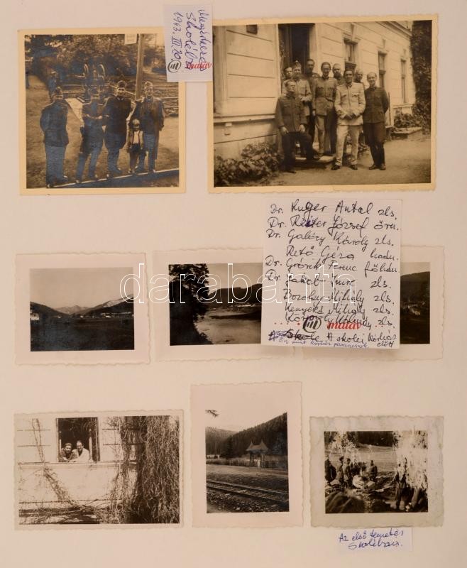 Description: 1943 A magyar hadsereg Ukrajnában. Skole. Magyar katonák és magyar hadikórház fényképes front naplója. 41 db fotó feliratozva nagyrészt, beazonosítható résztvevőkkel. / Hungarian soldiers in Ukraine, Skole.