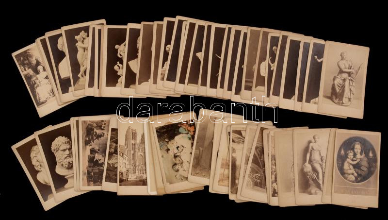 55 db antik műalkotásokat, szobrokat és festményeket ábrázoló régi keményhátú fotó és fénnyomat az 1860-as évekből / 55 vintage photos