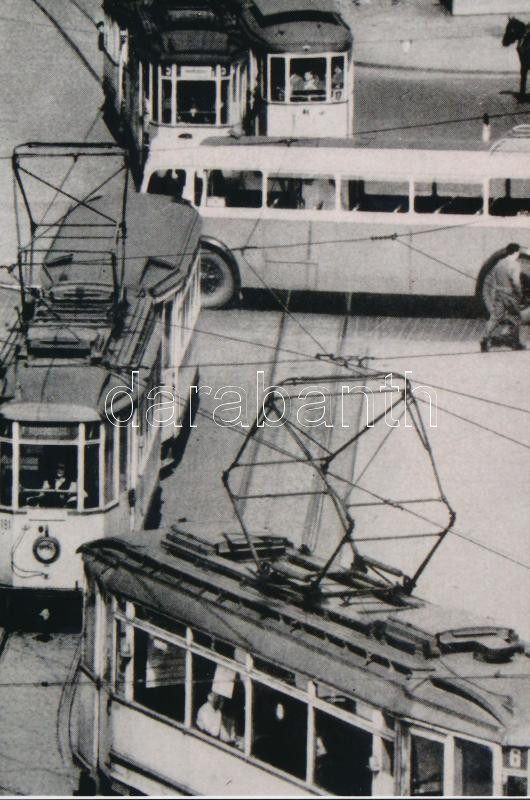 cca 1950 Villamosok torlódása ismeretlen helyszínen, korabeli felvétel...