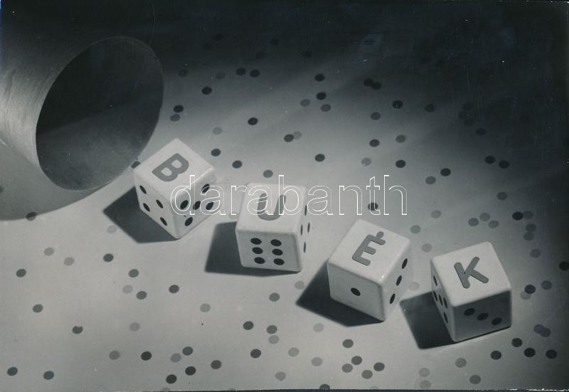 cca 1965 Dr. Csörgeő Tibor (1896-1968) újévi képeslap illusztrációja, vintage fotó, jelzés nélkül, a szerző hagyatékából, 10x14,5 cm