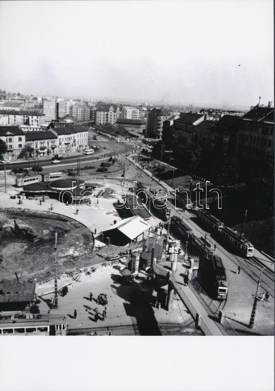cca 1971 Budapest, villamosok a Moszkva téren, korabeli negatívról készült modern nagyítás, 25x18 cm