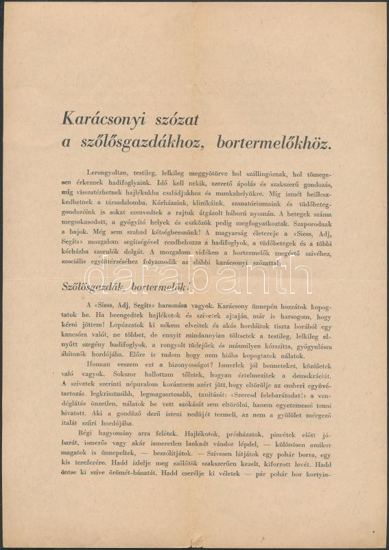 Karácsonyi szózat a szőlősgazdákhoz, bortermelőkhöz. Budapest, Szikra ...