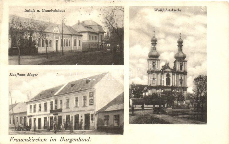 Boldogasszony, Frauenkirchen; iskola és városháza, templom, Mayer üzle...