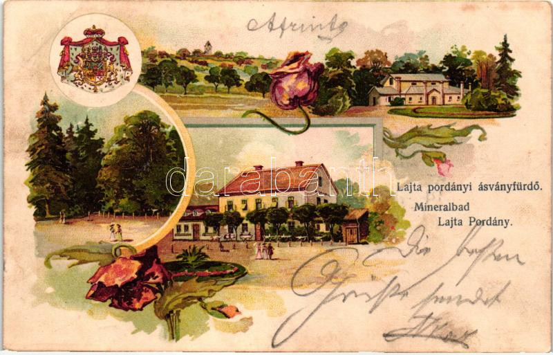 Lajtapordány, Leithaprodersdorf; Mineralbad / ásványfürdő / mineral spa, floral litho (fl)