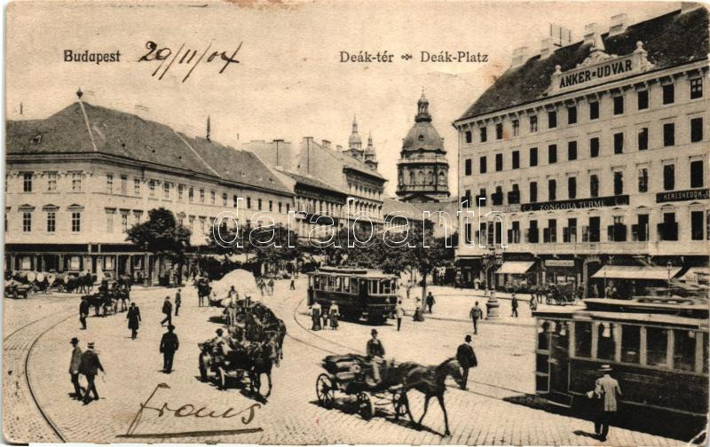 Budapest V. Deák tér, Anker-Udvar, villamosok, Fischer Fáni és Kohn Fü...