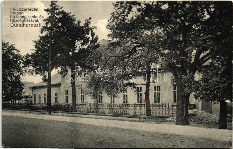 Dunaharaszti, Fő utca, Polgári fiú és leány iskola, Községháza, Herbic...