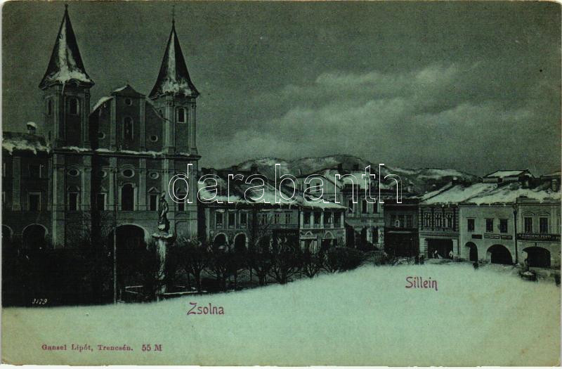 Zsolna, Sillein; Főtér, hotel, Biztosító Intézet, Gansel Lipót kiadása...