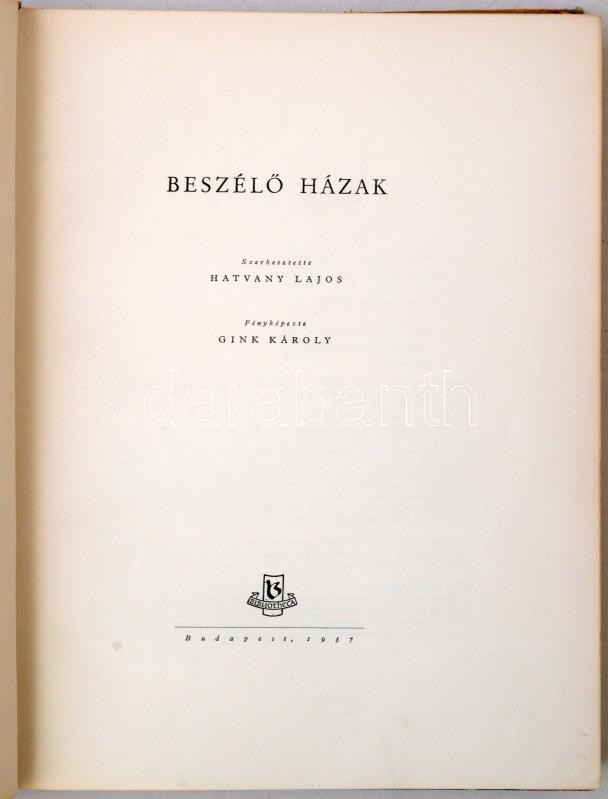 Hatvany Lajos(szerk.): Beszélő házak. Bp., 1957, Bibliotheca Kiadó. Kiadói félvászon kötés, fotókkal illusztrált, kopottas állapotban.