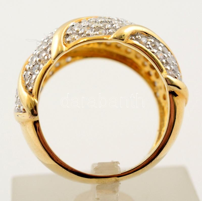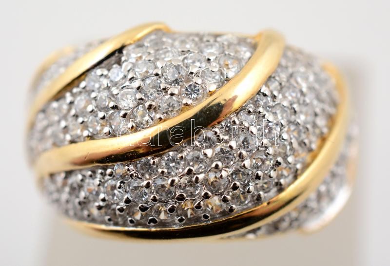 Ezüst(Ag), kövekkel gazdagon díszített, aranyozott gyűrű, jelzett, méret: 55, br: 9,1 g