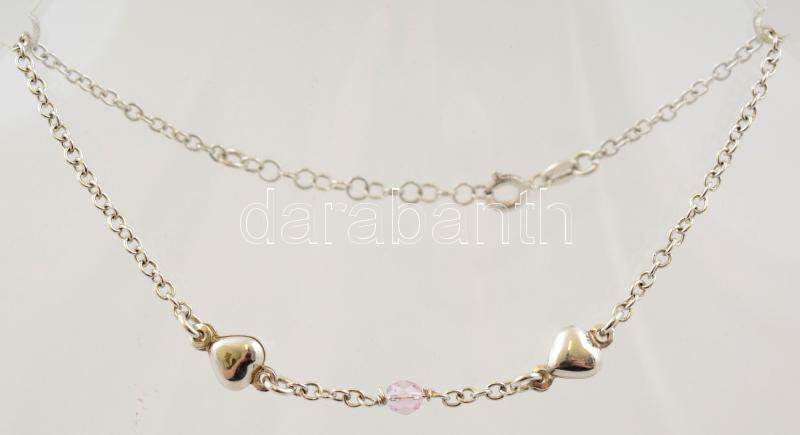 Ezüst(Ag), szívekkel és gyönggyel díszített bokalánc, állítható hosszú...