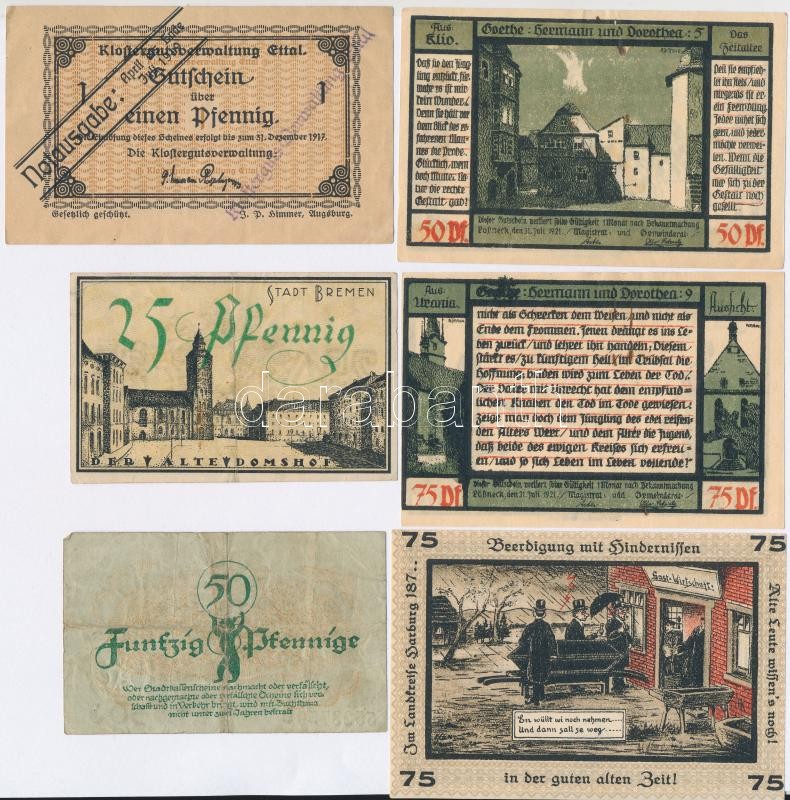 Német Birodalom / Weimari Köztársaság 1917-1921. 6db klf szükségpénz, közte Berlin, Bréma, Döbner T:I-,II,III German Empire / Weimar Republic 1917-1921. 6pcs of diff necessity notes, including Berlin, Bremen, Döbner C:AU,XF,F