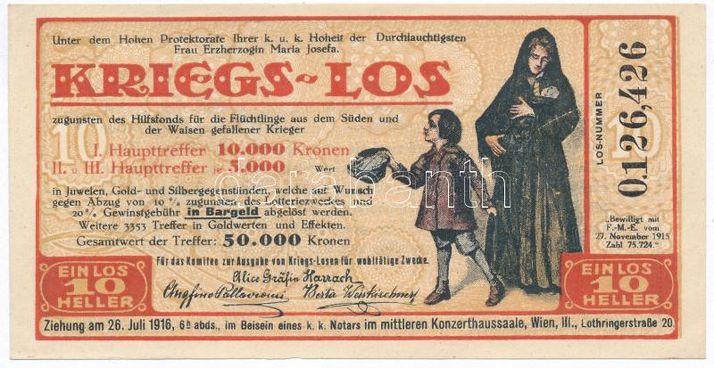 Ausztria / Bécs 1916. "Hadi sorsjegy" 10h-ről T:I-