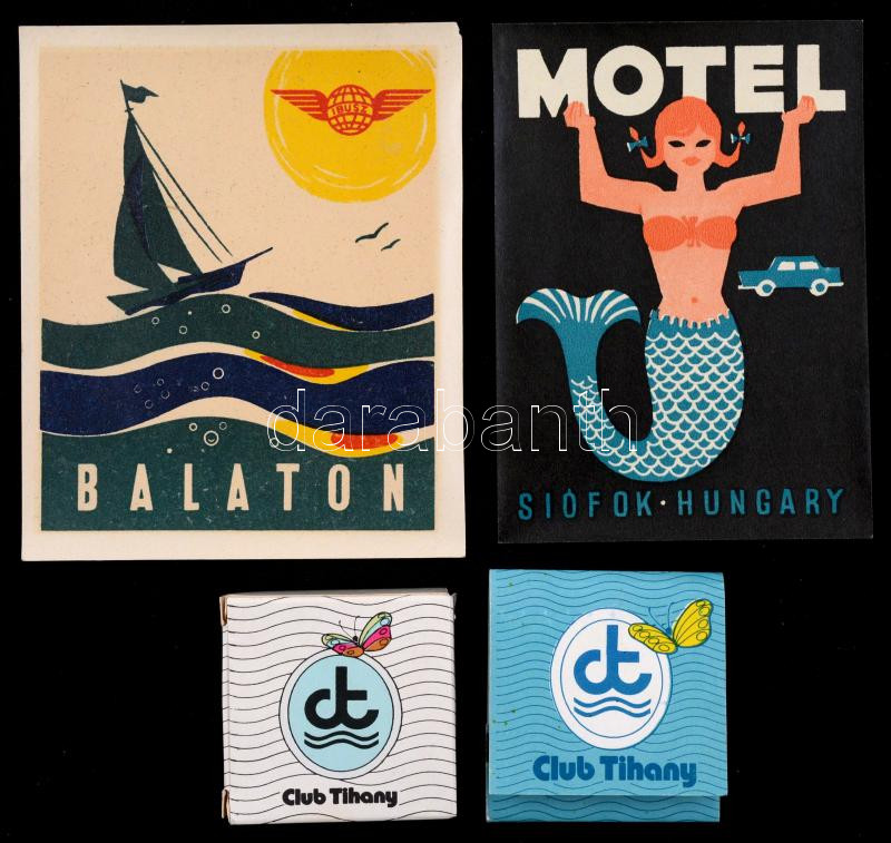 Club Tihany szappan, Club Tihany gyufa, Motel Siófok és IBUSZ Balaton bőröndcímke, összesen 4 db