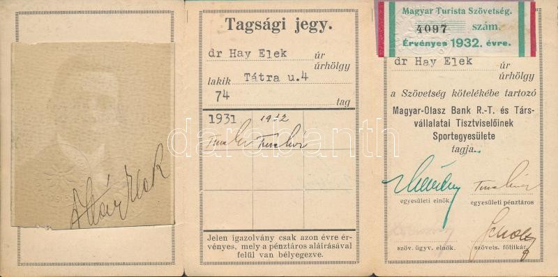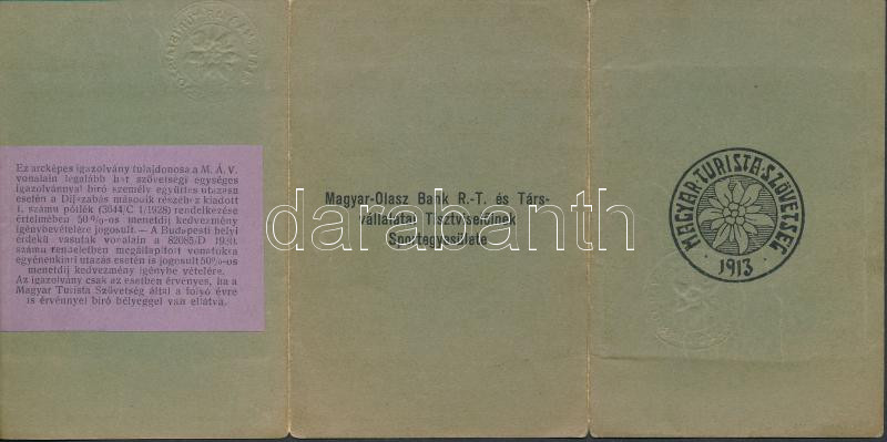 1931 Magyar Turista Szövetség arcképes tagsági igazolványa 6.5×10 cm