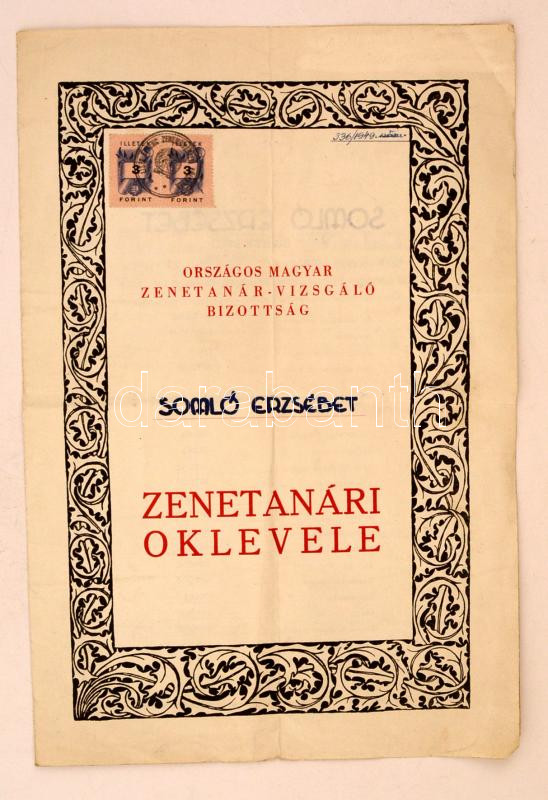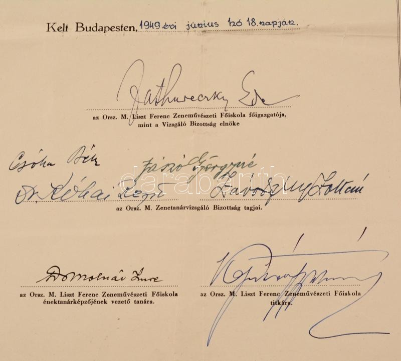 1940 Bp., Az Országos Magyar Zenetanár-vizsgáló Bizottság által kiállí... https://www.darabanth.com/en/274-Online-auction/274.0/Other-collectibles/Documents~16/1940-Bp-Az-Orszagos-Magyar-Zenetanar-vizsgalo-Bizottsag-altal-kiallitott-zenetanari-oklev~II1399926