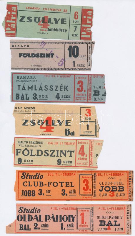 1942-1943 9 db mozijegy(Pátria, Rialto, Kamara, Studio, Palace)