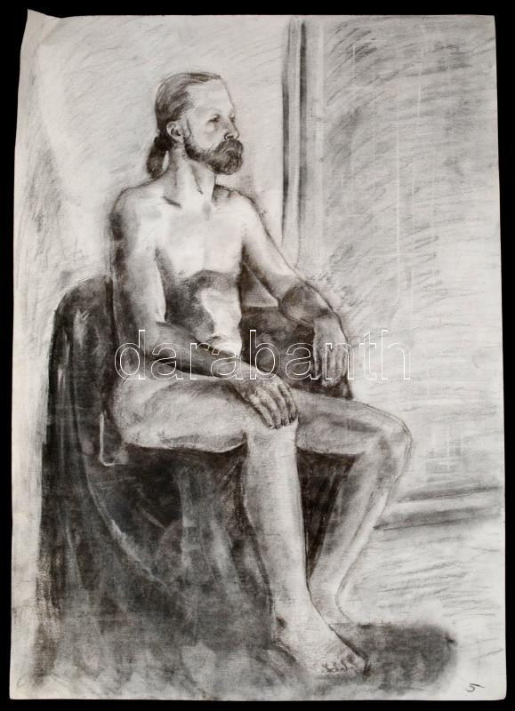 Jelzés nélkül: Ülő férfi. Szén, papír, 70×50 cm