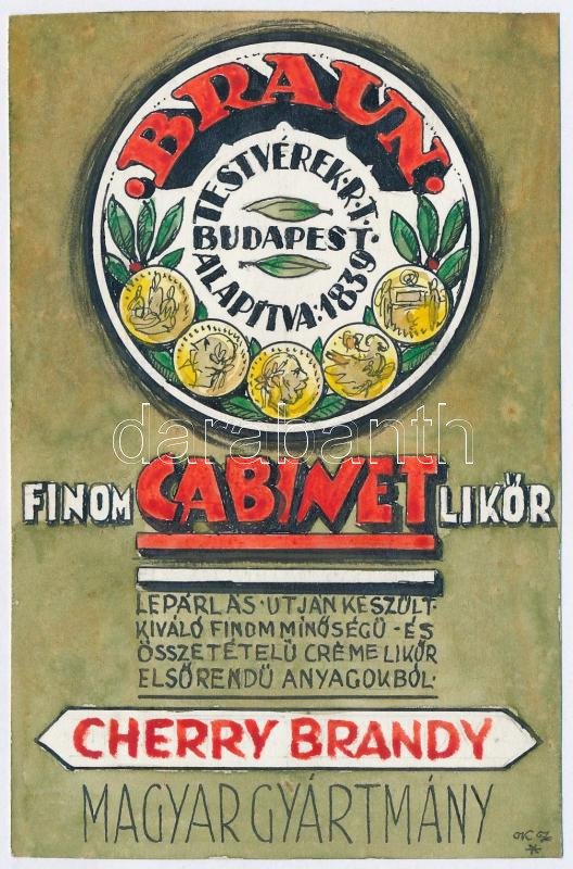 Kónya Zoltán (1891-?): Finom Cabinet likőr, reklámterv. Vegyes technik...