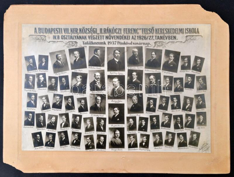 1927 Budapest, II. Rákóczi Ferenc Felsőkereskedelmi Iskola kistablója ... https://www.darabanth.com/en/274-Online-auction/274.0/Other-collectibles/Photo~19/1927-Budapest-II-Rakoczi-Ferenc-Felsokereskedelmi-Iskola-kistabloja-64-nevesitett-portreval-~II1397459