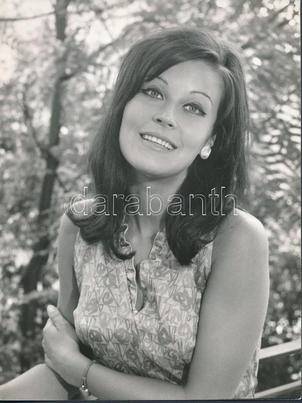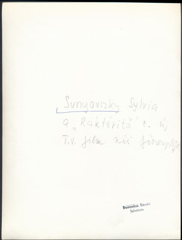 Domonkos Sándor(1940-): Sunyovszky Sylvia(1948-) Jászai Mari-díjas magyar színésznő, pecséttel jelzett, feliratozott fotó, 24x18 cm