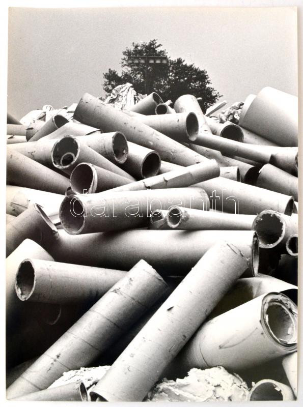 cca 1965 Kalocsai Rudolf: Hulladék, feliratozott vintage fotóművészeti alkotás a környezeti ártalmak feltárásáról, 40x30 cm