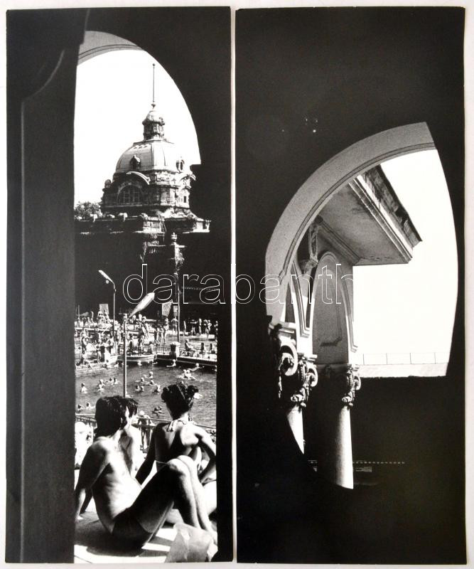cca 1980 Budapest, Széchenyi fürdő I-II., Giltán Tivadar 2 db pecséttel jelzett, feliratozott vintage fotója,