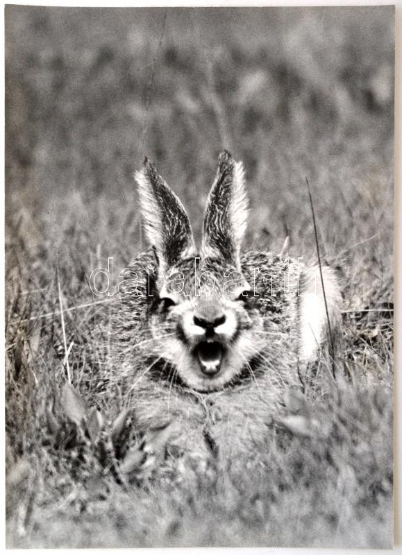 cca 1985 Berta Béla: Röhögő nyúl, feliratozott vintage fotóművészeti a...