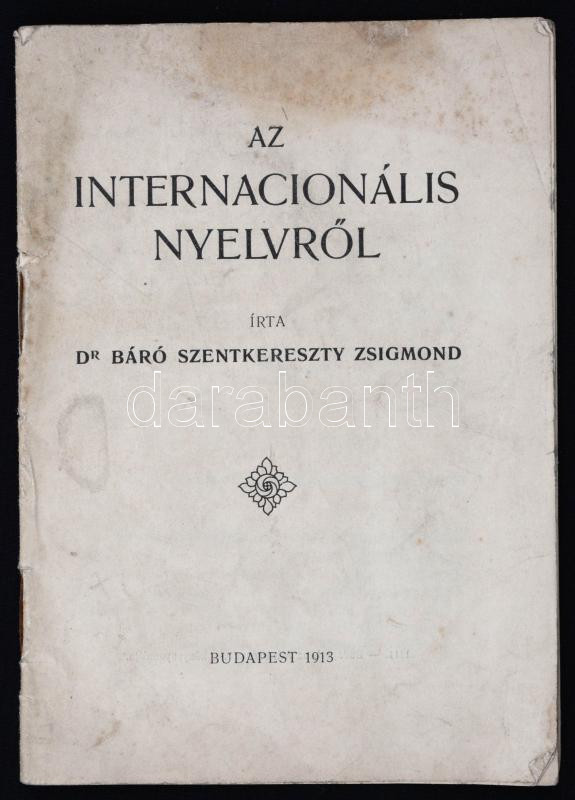 Dr. Báró Szentkereszty Zsigmond: Az internacionális nyelvről. Budapest... https://www.darabanth.com/en/274-Online-auction/274.0/Other-collectibles/Printed-Materials~28/Dr-Baro-Szentkereszty-Zsigmond-Az-internacionalis-nyelvrol-Budapest-1913-Athenaeum-22-p-K~II1394106