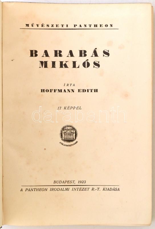Művészeti Pantheon. Barabás Miklós, Ferenczy Károly, Madarász Viktor, Pheidias. Hoffmann Edit: Barabás Miklós. Budapest, 1923, Pantheon Irodalmi Intézet Rt. Petrovics Elek: Ferenczy Károly. Budapest, é.n., Pantheon Irodalmi Intézet Rt. Lyka Károly: Madarász Viktor élete és művei. Budapest, én. Pantheon Irodalmi Intézet Rt. Hekler Antal: Pheidias Művészete. Budapest, 1922, Pantheon Irodalmi Intézet Rt. Kiadói aranyozott gerincű félvászon kötés.