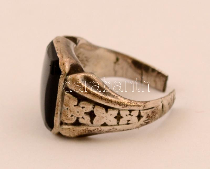 Ezüst(Ag) ónix köves pecsétgyűrű, jelzett, sérült, méret: 56, br: 8,3 ...