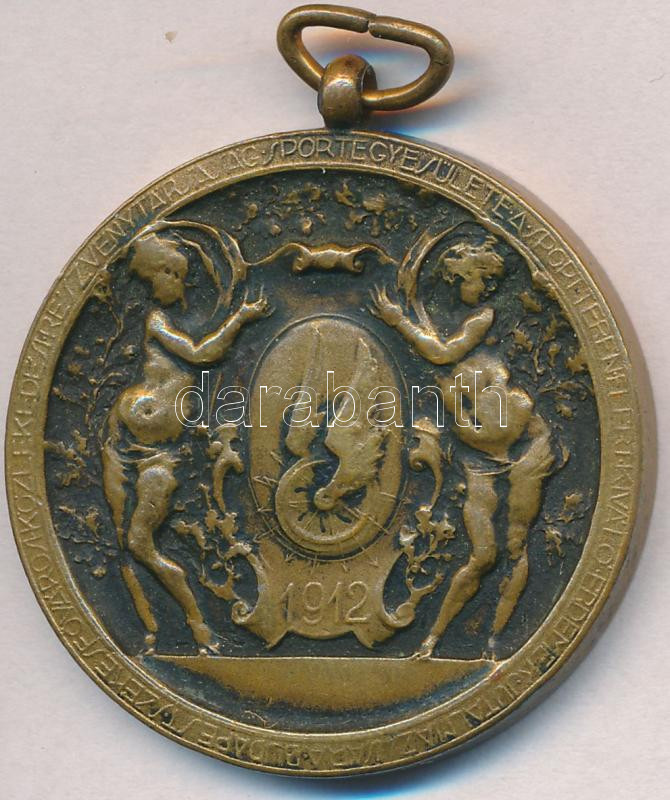 Description: 1912. "Budapest Székesfővárosi Közlekedési Részvénytársaság Sportegyesülete A Sport Terén Elért Kiváló Érdemek Jutalmazására" Br díjérem füllel (40mm) T:2 kis ph., patina