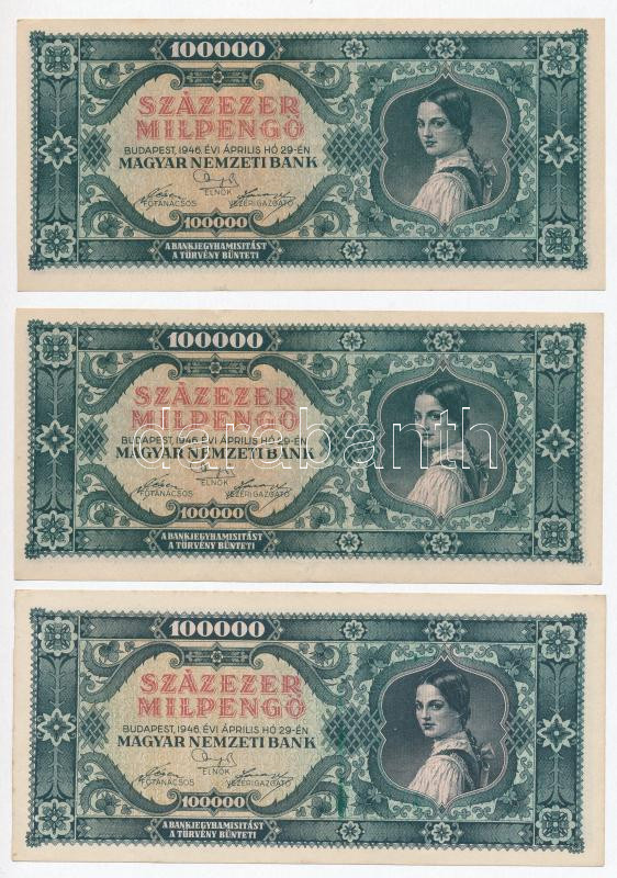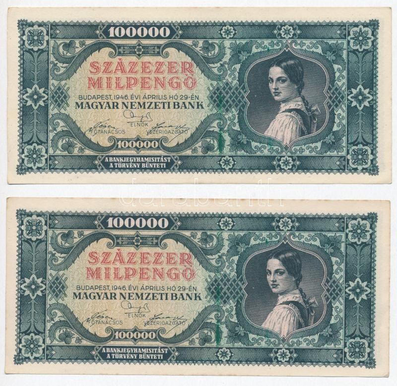 1946. 100.000MP (5x) 3+2 sorszámkövetők T:II
