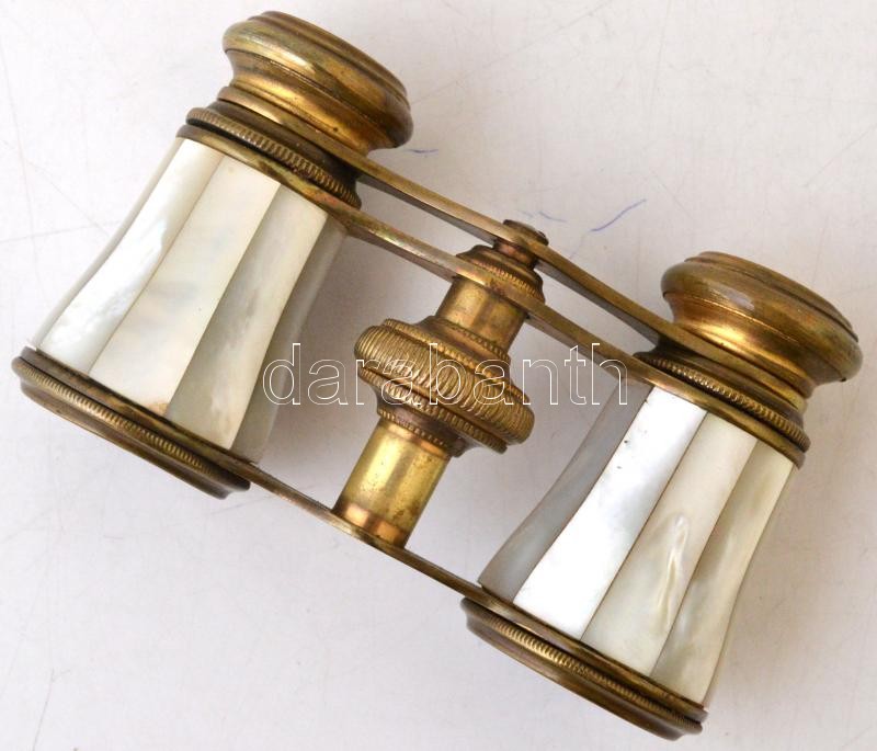 Gyöngyház berakásos színházi látcső, jelzés és tok nélkül, 9x5.5 cm