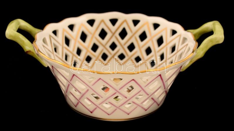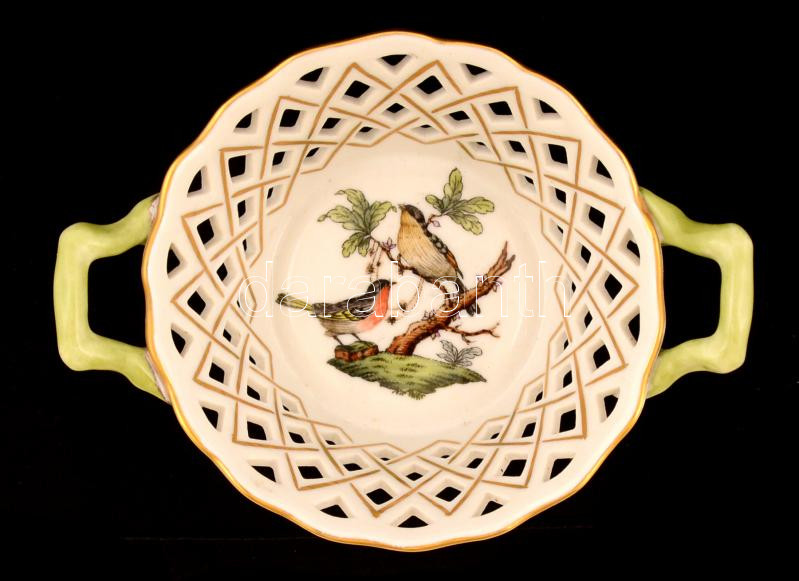Herendi Rotschild áttört füles tálka, kézzel festett, jelzett, hibátla...
