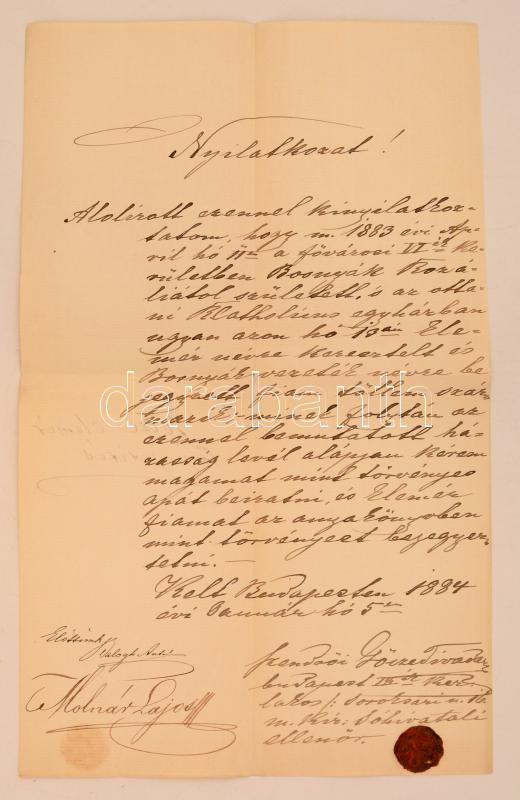 https://www.darabanth.com/en/275-Online-auction/275.0/Other-collectibles/Documents~200238/1884-Bp-Sohivatali-ellenor-nyilatkozata-melyben-elismeri-tortvenytelen-gyermeket-viaszpecsC3~II1406161