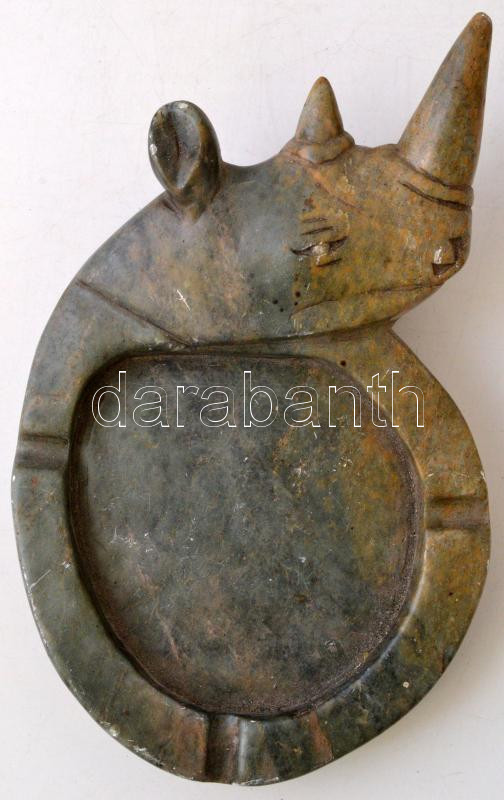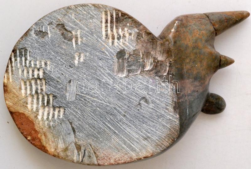 Hamutartó faragott zsírkő, orrszarvú fejjel, apró hibákkal, 24×15 cm