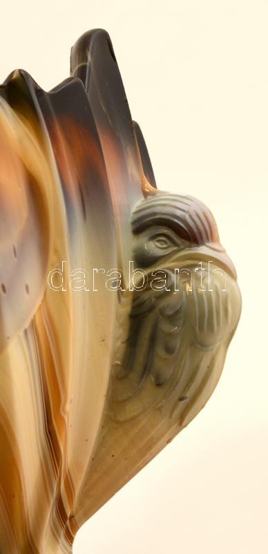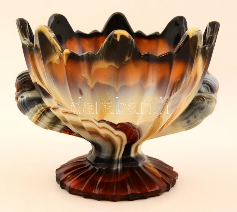 Art deco stílusú papagájos achát üveg kínáló, formába fúvott, jelzés nélkül,hibátlan, m: 16 cm., d: 19 cm.