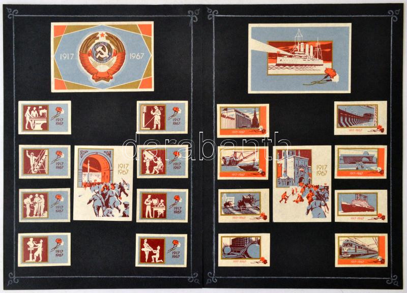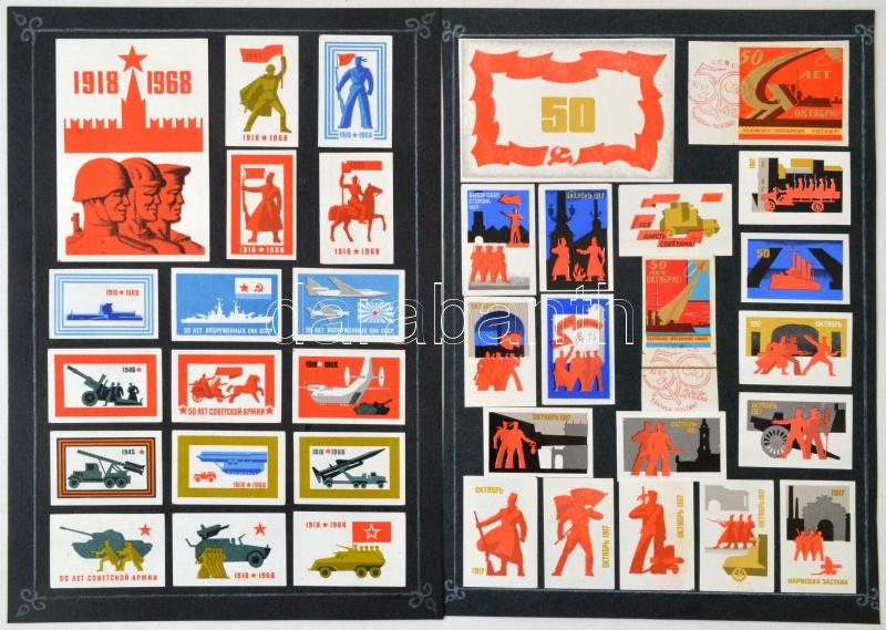 Szovjet gyufacímke gyűjtemény:1917-67; 50év, Nagy óktóber, Konszomol, stb. témában, 15db kartonon, 194db+16db nagyméretű, különböző méretben