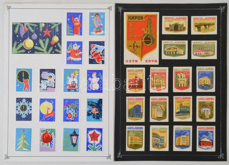 Description: Szovjet gyufacímke gyűjtemény:600 éves Kirov és Kaluga, karácsony, Tallin, Tolsztopj, múzeum, stb. témában, 18db kartonon, 288db+18db nagyméretű, különböző méretben
