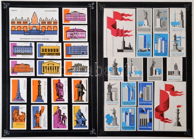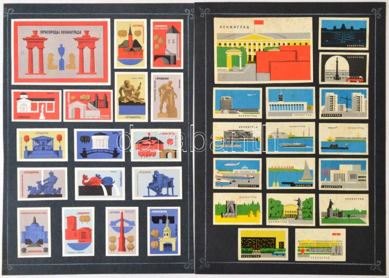 Szovjet gyufacímke gyűjtemény:Leningrád, Donyeck, Kaukázus, Bulgária stb. témában, 10db kartonon, 208db, különböző méretben