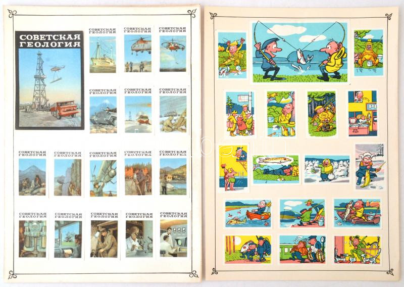 Szovjet gyufacímke gyűjtemény:horgászat, gelógia, tél, cirkusz, fesztivál, stb. témában, 13db kartonon, 210db, különböző méretben