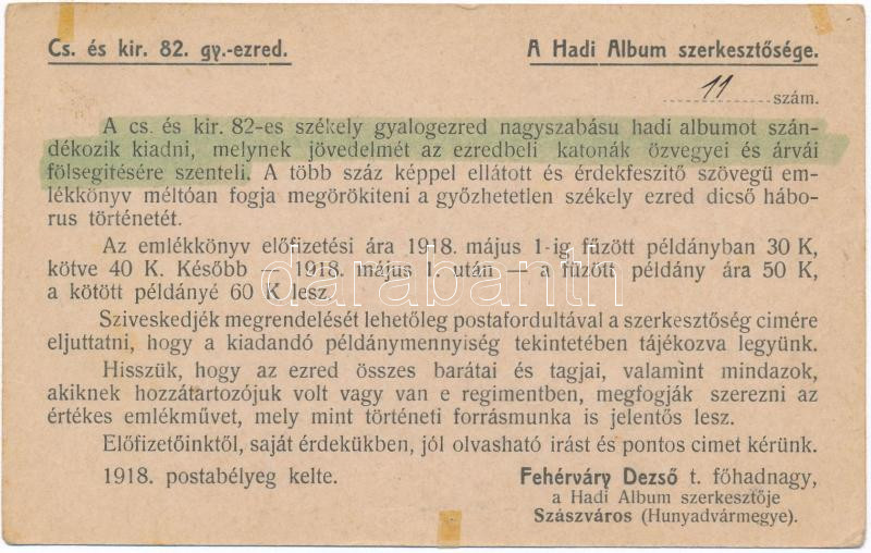 https://www.darabanth.com/en/275-Online-auction/275.0/Other-collectibles/Military~200247/1918-A-Cs-es-kir-82-gyalogezred-Hadi-Album-szerkesztosegenek-levelezolapja-a-Hadi-Album-kiad~II1408155