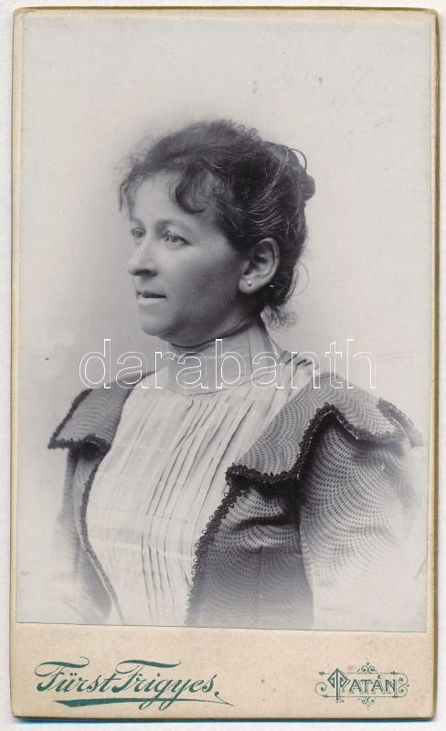 1901 Női portré Fürst Frigyes tatai műterméből, keményhátú kabinetfotó 11×6 cm