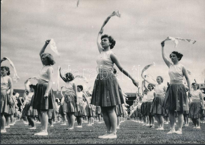 1955 Bp., Kerületi spártákiádok Csehszlovákiában, feliratozott sajtófotó, a Képes Sport pecsétjével, 13x18 cm
