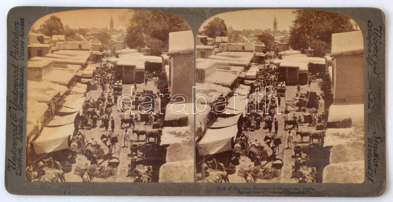 cca 1860-80 Piactér, Damascus, Westwood sztereófotó, 9x18cm