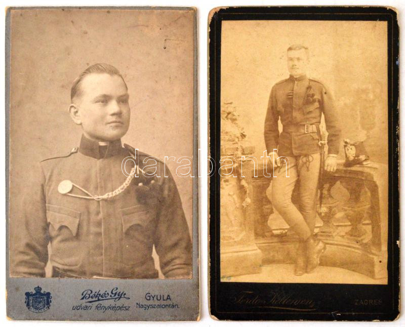 cca 1880-1890 Katonaportrék, 2 db, keményhátú fotó, 10.5x6.5 cm x 2.